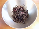 赤紫蘇の葉っぱを綺麗に洗って水気を切る。