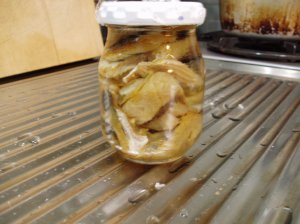 とりあえず、水気を切ってオリーブオイルに漬け、冷蔵庫で眠らせる。