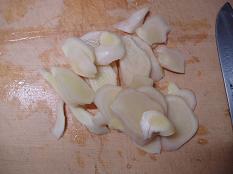 包丁でスライスする。塊のまま梅酢に漬け込むよりこの方が早く仕上がると思われたので。