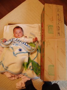 左は6ヶ月の娘であるが、スモークくん2号が如何に大きいかわかる。