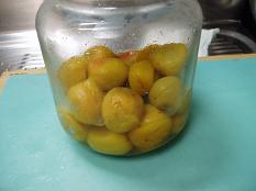 さて、熟した梅を塩漬けしてから1週間たちました。