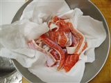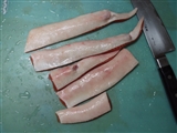 先日、スーパーに行きましたところ、鮭の腹の部分(ハラス)が売ってありましたので、これはつまみの素材に使えそうだと 思って買いました。 天然の秋鮭のだったんですが、さすがにちょっと脂っぽいかなぁと思い、「鮭とば」にしてみました。 と言っても、作り方は以前のビーフジャーキーとほぼ同じです。 材料:鮭の腹の部分、塩、薄口醤油、酒、スモークウッド