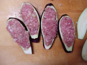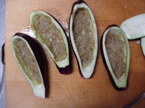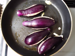 炒めた茄子の中身を茄子に入れて