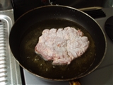 それに小麦粉をまぶしつけ、多めの油で揚げるように焼く(本来なら小麦粉を付けた後、溶き卵に浸して揚げるそうです)。