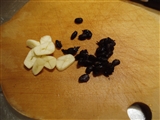 フライパンでドウチとニンニクをサラダ油で炒め、香りを出す。焦がさないように注意。
