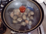 アサリの貝が開いて火が通って来たら、水溶き片栗粉を入れてとろみをつける。