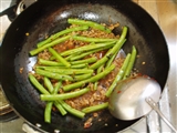材料:サヤインゲン、挽肉(豚、あるいは牛豚合挽)、豆板醤(トウバンジャン)、